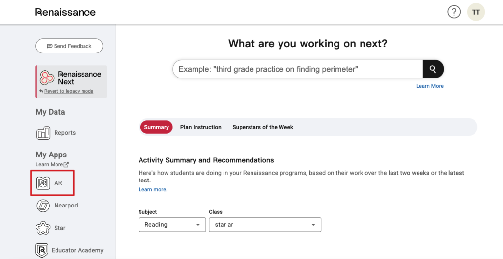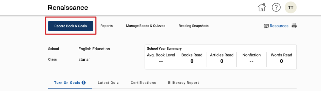 AR报告生成方式:主页【AR图标】>【Reports】>【Reading Practice】>【Student Record】>【View Report】。